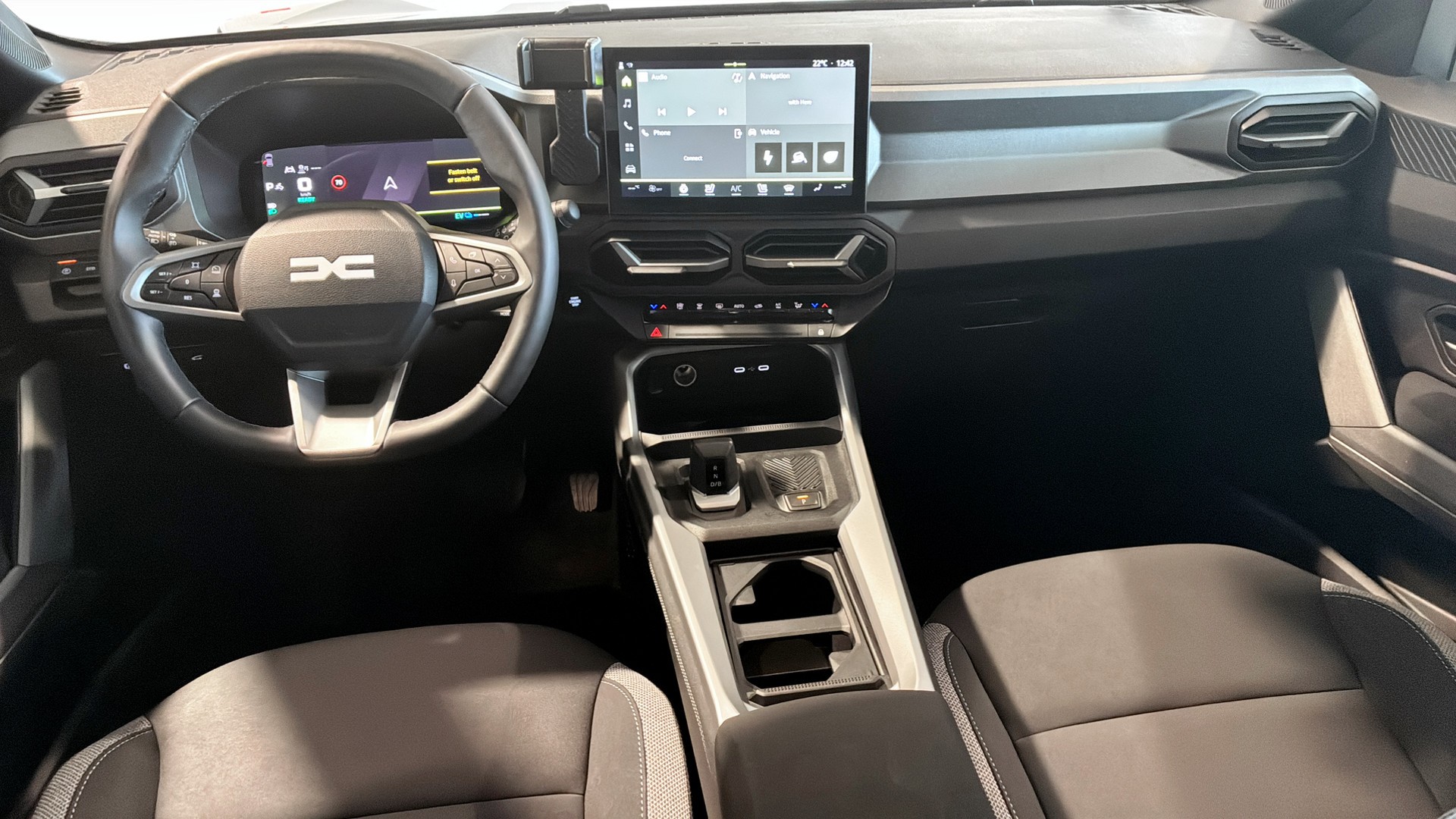 Här får du Dacias nya hybriddrivlina med automatlåda, 155 hk och låg förbrukning enligt WLTP. Framhjulsdrift gör den lättkörd i stan, samtidigt som den rejäla storleken ger gott om benutrymme och ett stort bagage – perfekt för vardag, semester och fritidsaktiviteter.