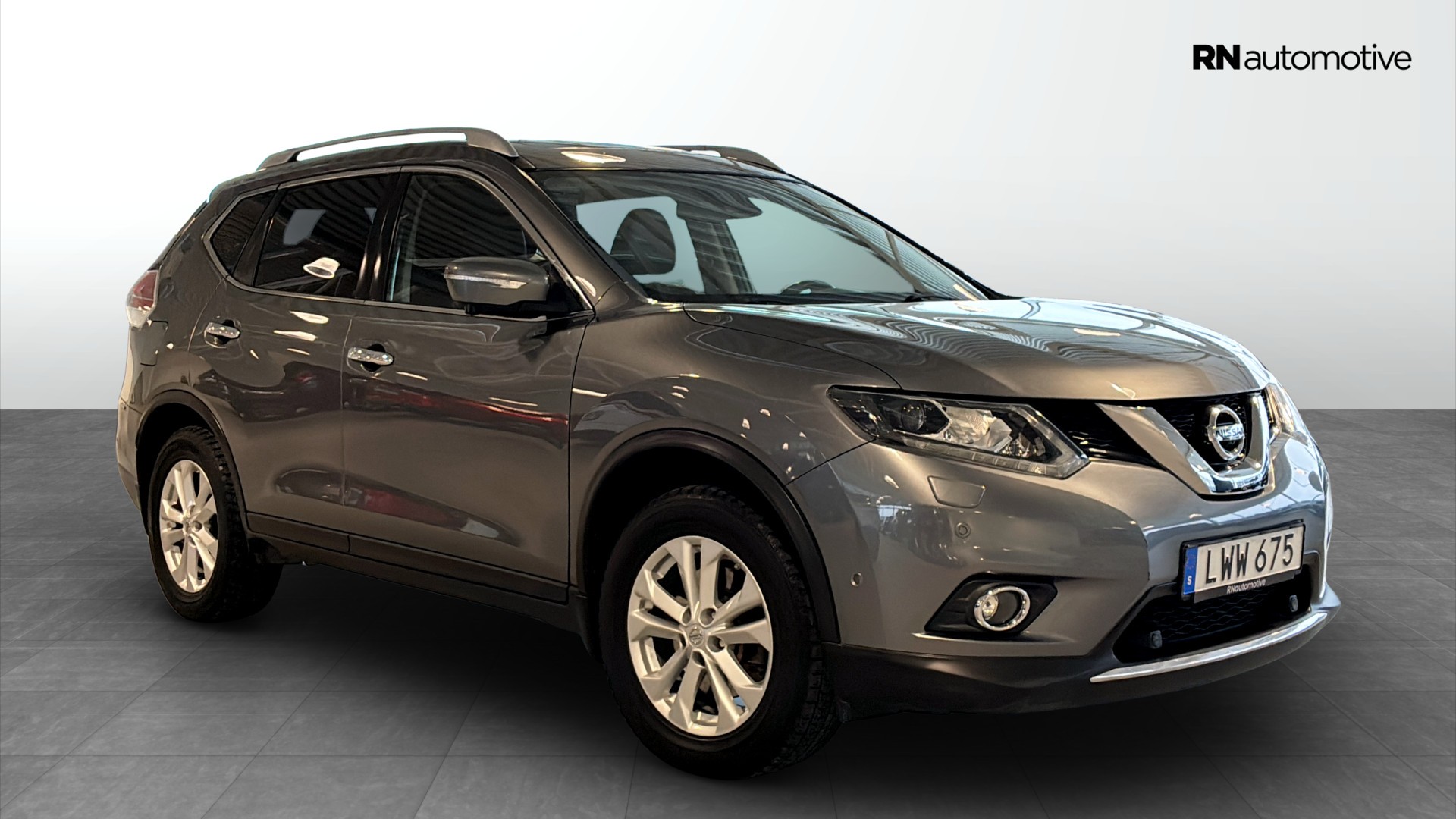 Nissan X-Trail 1.6 dCi Tekna 7-sits automat, årsmodell 2016, i snyggt grått utförande – den perfekta familjesuven med låg årsförbrukning och gott om utrymme. Bilen är utrustad med bränslesnål dieselmotor på 131 hk, automatlåda och framhjulsdrift.