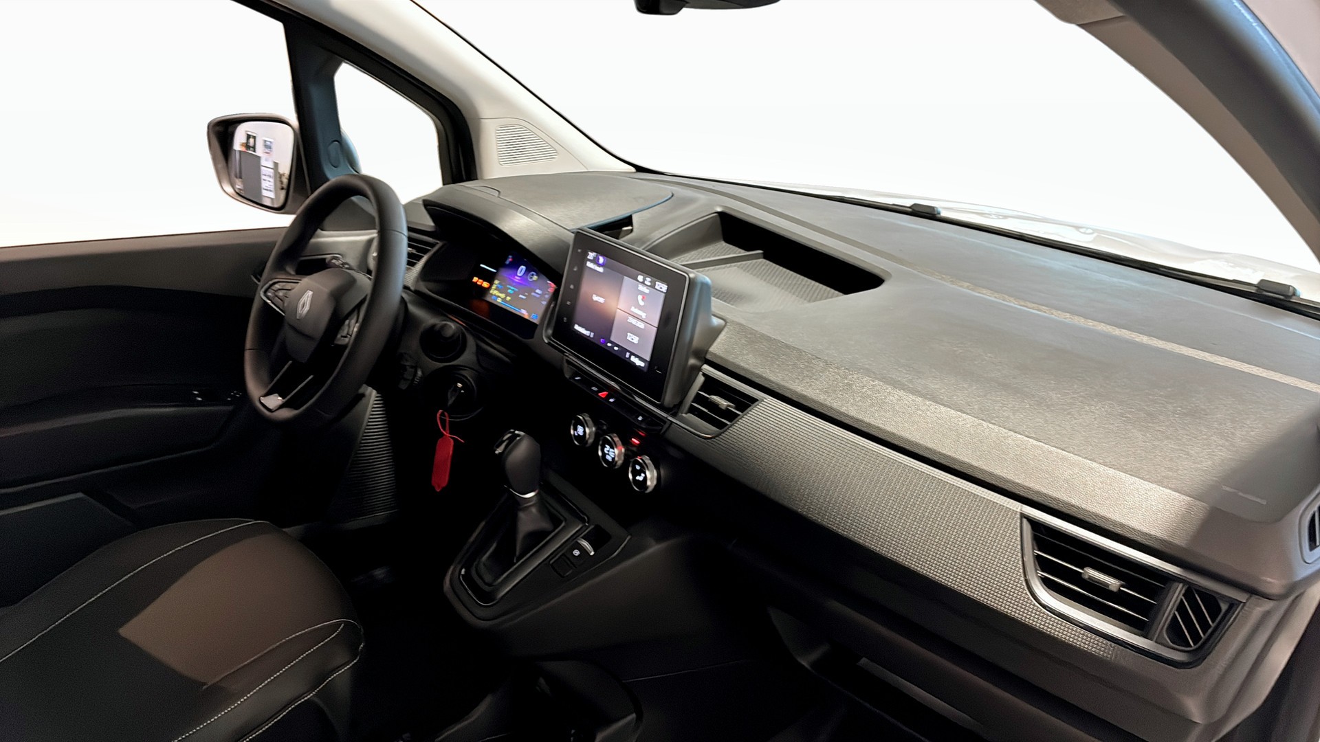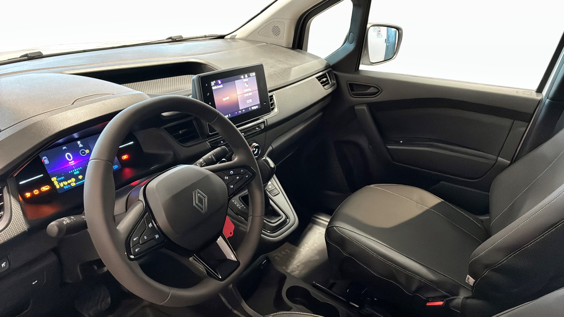 Renault Kangoo E-Tech L2 Base Line 120hk, årsmodell 2025, i snygg mineralvit – en modern, helelektrisk transportbil perfekt för dig som vill köra både smart och miljövänligt i vardagen.