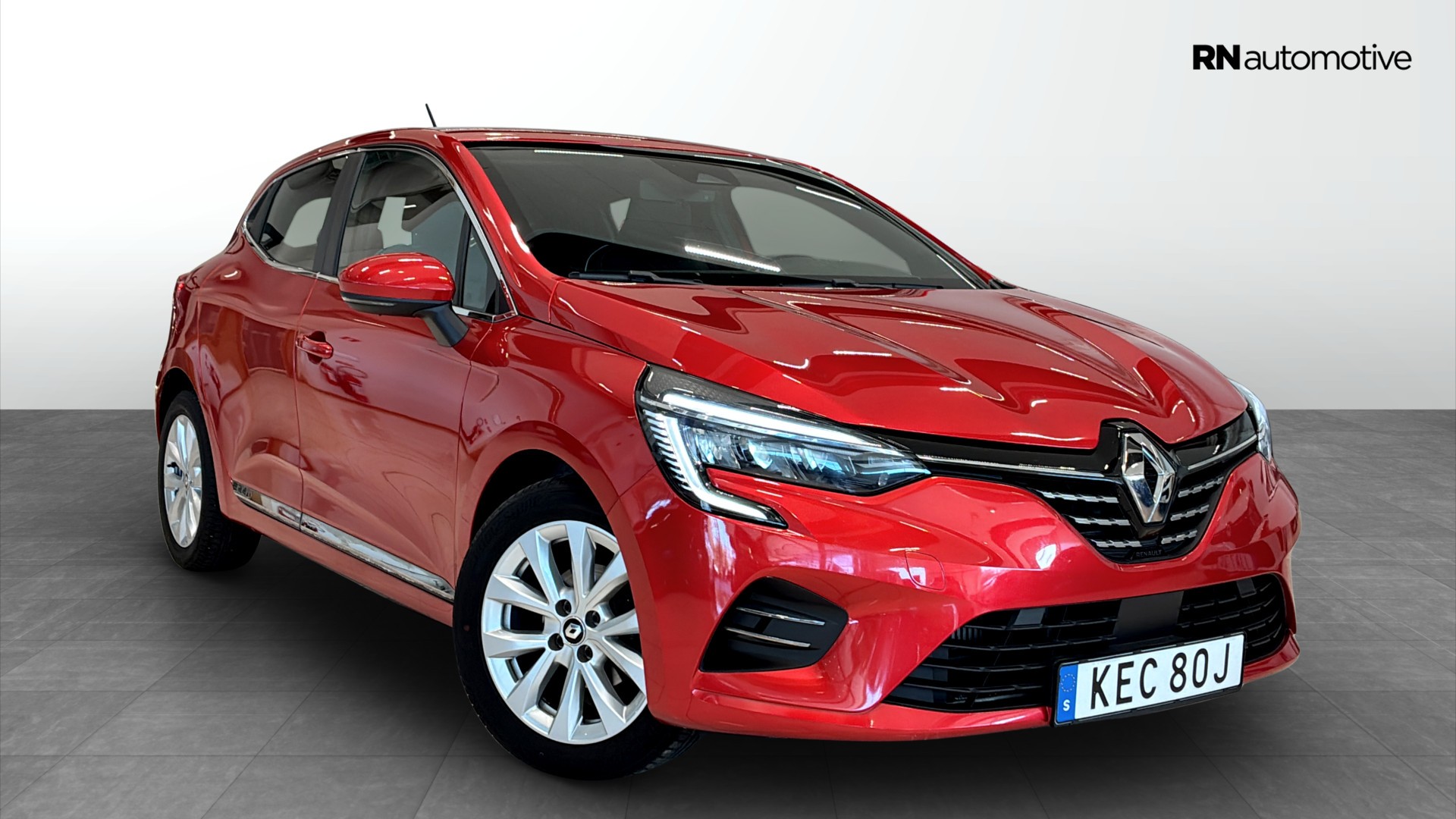 Renault Clio Techno TCe 90, 2023, i den läckra färgen Röd Flamme – en modern och bränslesnål småbil med rätt utrustning för både vardag och pendling. Endast ca 8050 mil och första gången registrerad 2022-11-29.